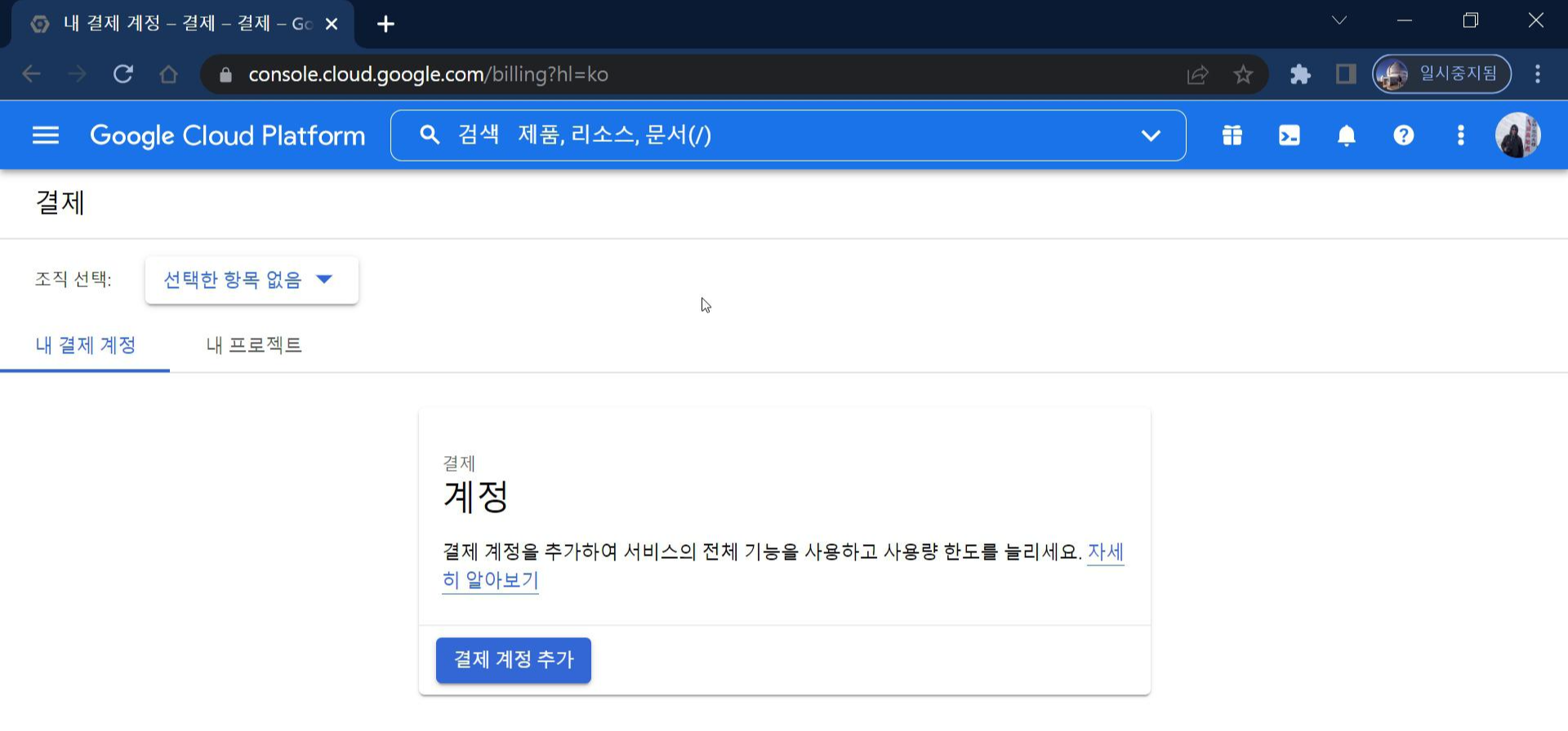 - 결제 계정 생성 전에 만든 프로젝트는 결제 계정이 적용 안되는 경우가 있는 것 같으니 먼저 생성